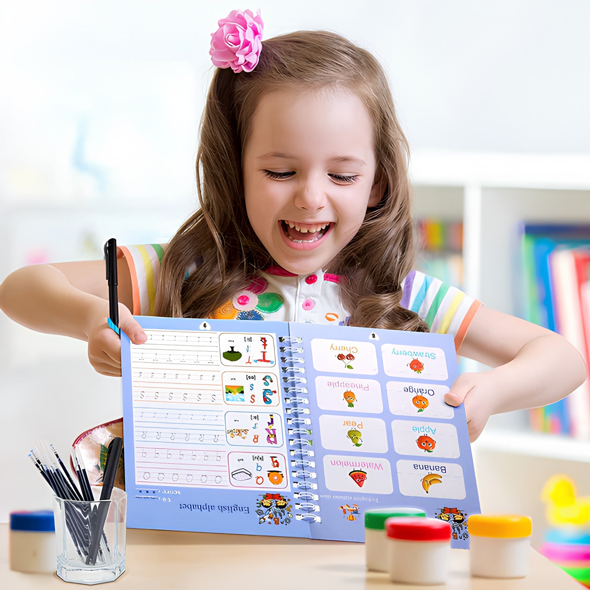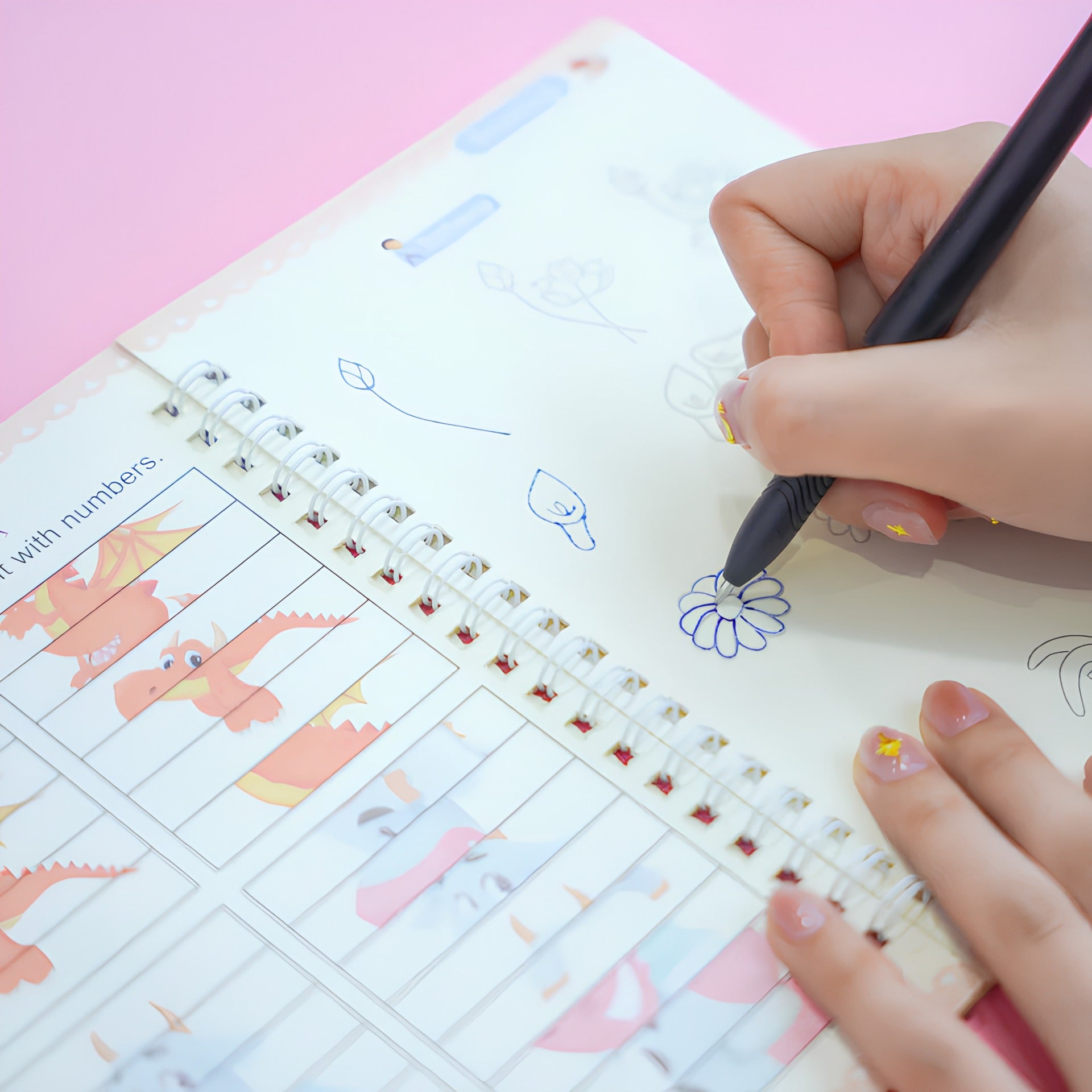 Bläcket torkar och försvinner inom tio minuter, vilket betyder att häftena kan användas om och om igen utan att sidorna blir fullkladdade. Perfekt för barn som älskar repetition – och för föräldrar som vill att en produkt ska räcka länge