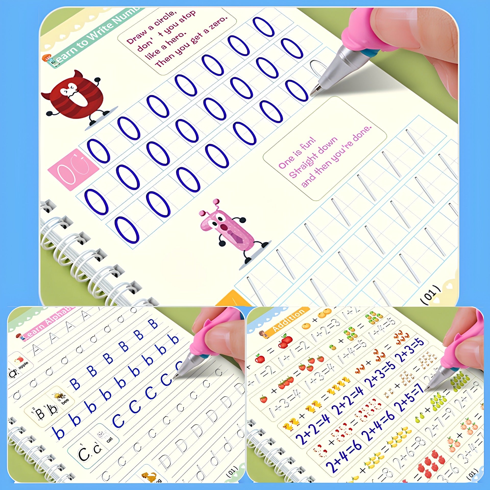 Häftena tränar matematik, handstil, motorik, visuell förståelse, koncentration och penngrepp – utan att barnen ens märker att de tränar. Den medföljande penngreppstränaren hjälper till att skapa korrekta vanor redan från start, något som gör en enorm skillnad längre fram i skolan