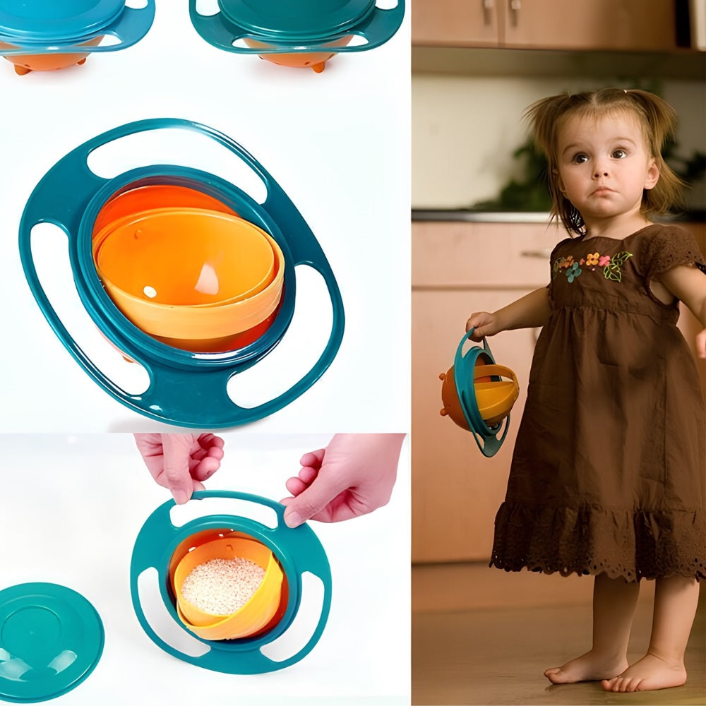 Med vår spillfria 360°-barnskål slipper du kladd, tårar och irritation. Den roterande insidan gör att maten stannar i skålen – även om barnet vänder den upp och ner. Perfekt både hemma, i bilen och på språng.